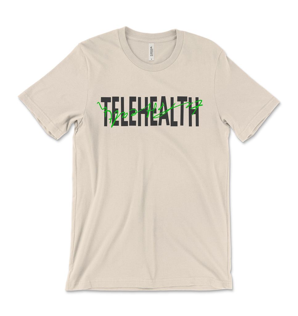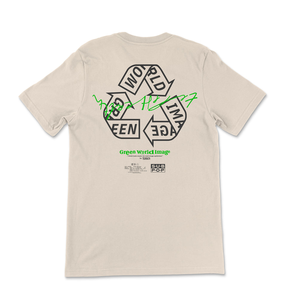 A brand new Telehealth t-shirt to coincide with their new album Green World Image. Two-sided design printed on a sand color t-shirt.